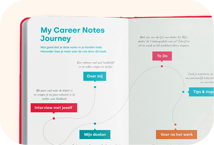 My Career Notes is een persoonlijke en praktische pocket die helpt bij de eerste stappen na het afstuderen. Het geeft richting, zelfvertrouwen en overzicht in een fase vol keuzes.