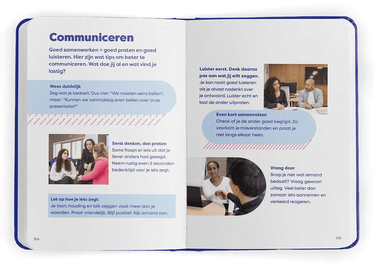 In het begin was er wat twijfel. Lezen studenten überhaupt nog? Zou de pocket daadwerkelijk gebruikt worden? En past het bij alle niveaus en achtergronden? Die vragen zorgden voor extra scherpte in het creatieproces en hielpen om toon, inhoud en vorm goed af te stemmen op de doelgroep. Het maakte de pocket extra waardevol.