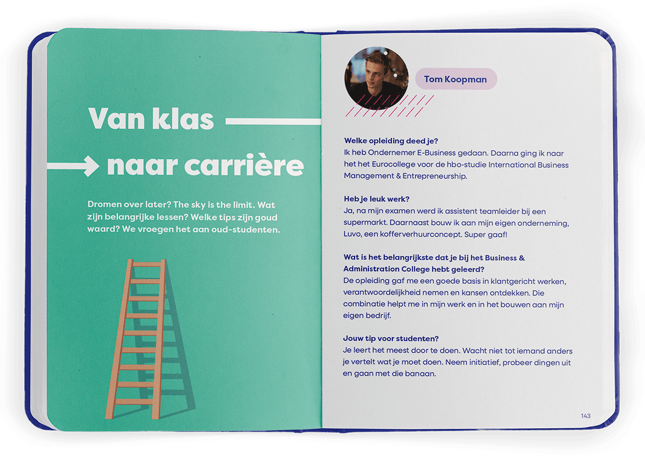 B&A koos voor een pocket die studenten vanaf de eerste dag inspireert en ondersteunt in hun ontwikkeling. Het boekje wordt uitgereikt tijdens de Gouden Weken en vormt een vast onderdeel van de introductie. Daarmee krijgt iedere student dezelfde stevige basis, ongeacht niveau of klas.