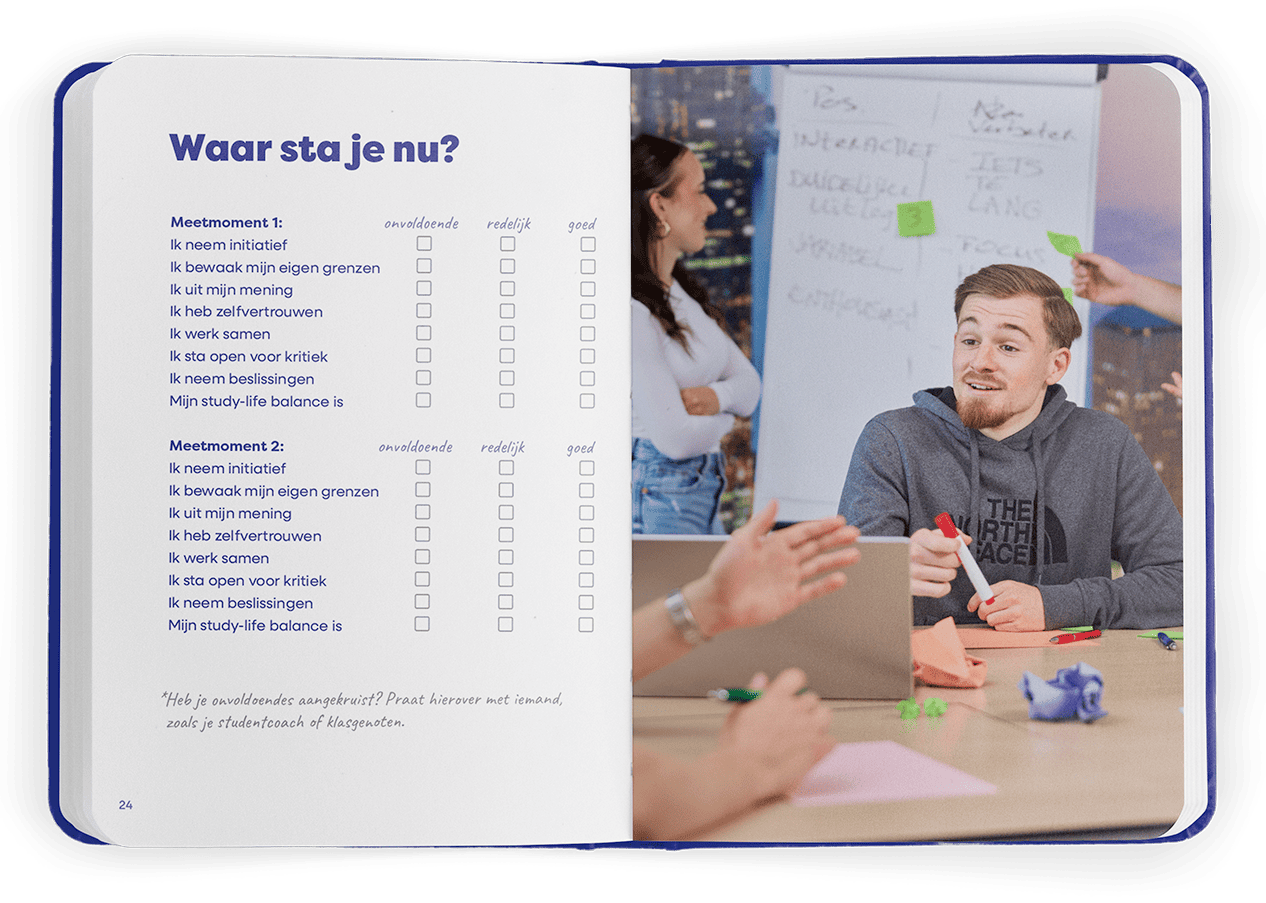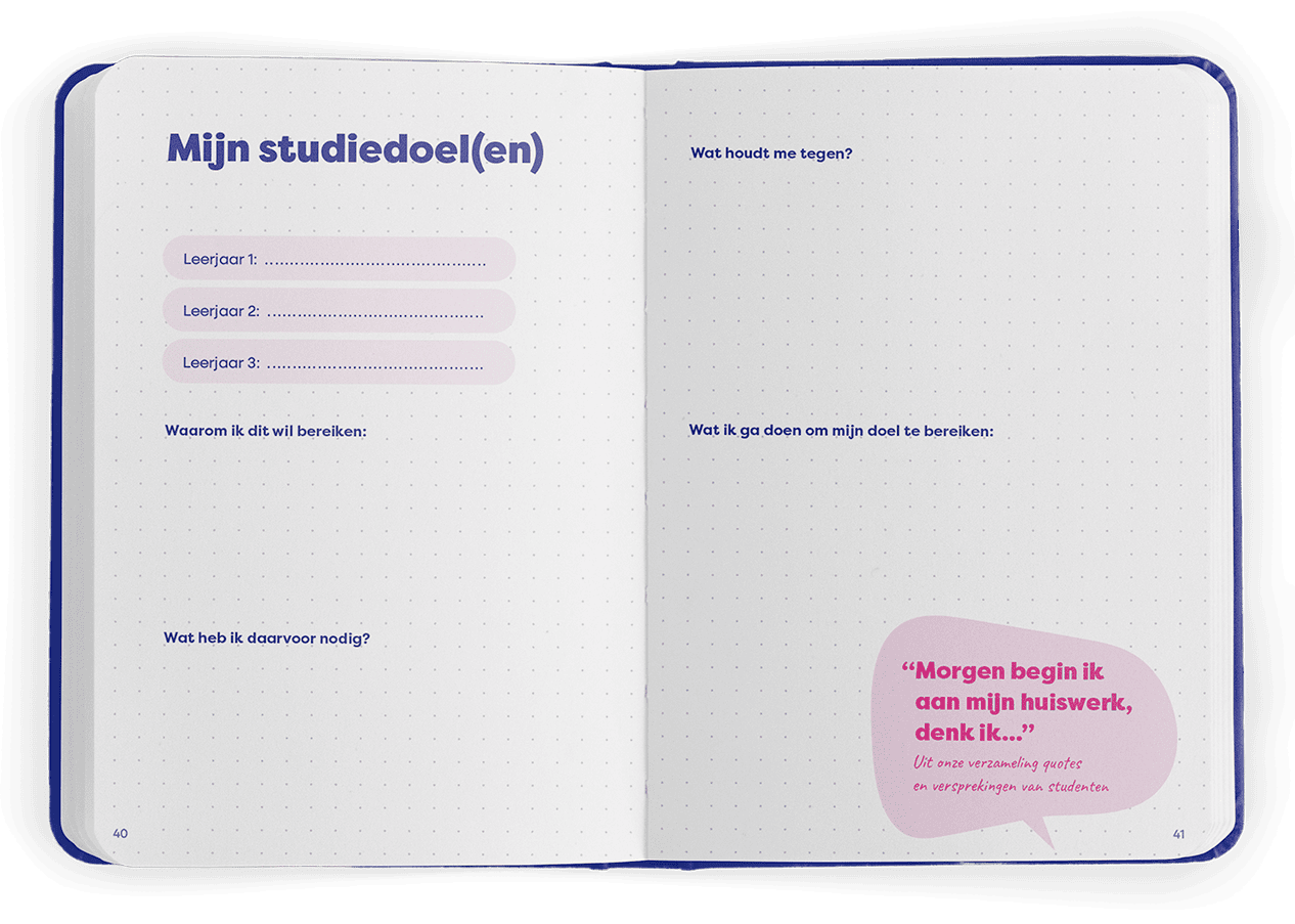 My Study Notes is een originele en waardevolle toevoeging voor het gehele eerste studiejaar. Laagdrempelig, praktisch en volledig afgestemd op de identiteit, doelgroep en visie van de onderwijsinstelling. Van tone of voice tot inhoud en vormgeving: we zorgen dat het aansluit bij jullie studenten en jullie unieke aanpak.